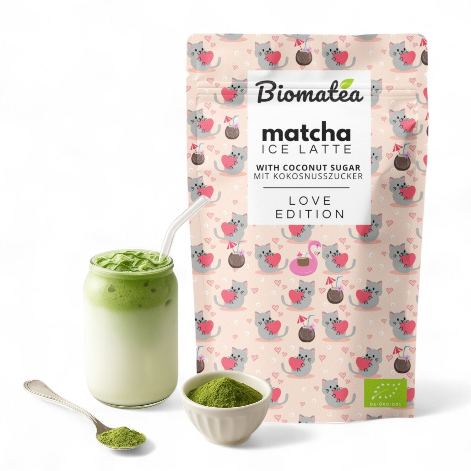 Biomatea 100g Bio Matcha Latte, aus Japan, Love edition, leicht gesüßt