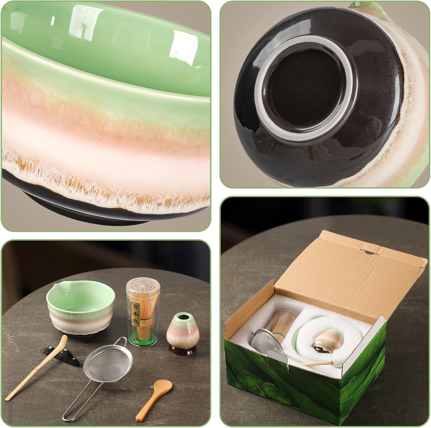 Japanisches Matcha-Set, 7-teilig – Handgefertigtes Keramikset für die traditionelle Teezeremonie, Grün