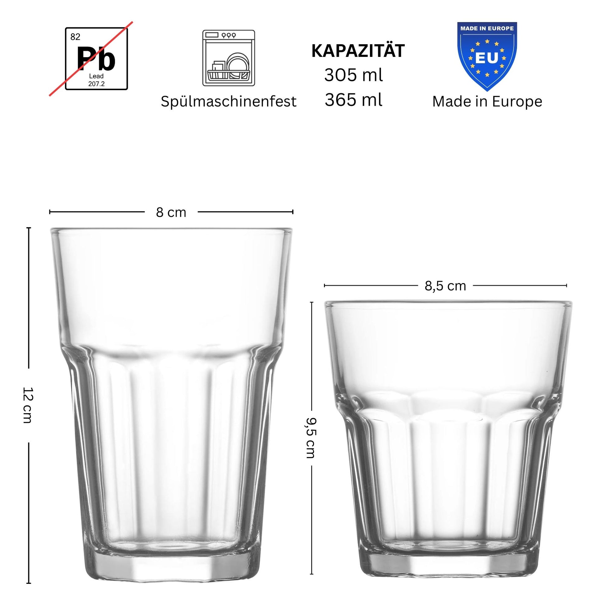 Lieferumfang: 6 Stück 305 ml + 6 Stück 365 ml Gläser