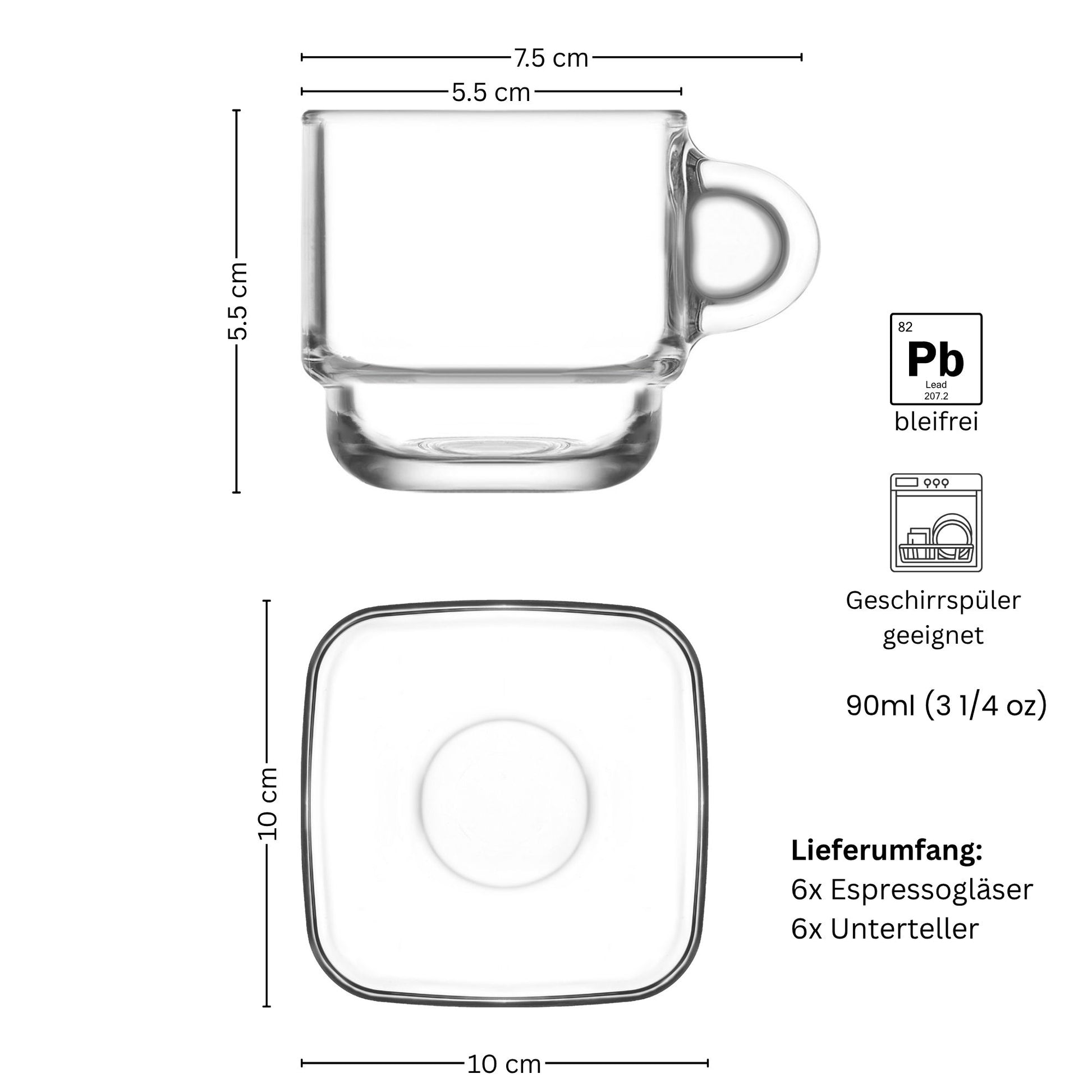 Setinhalt: 6 Espressogläser + 6 Untertassen