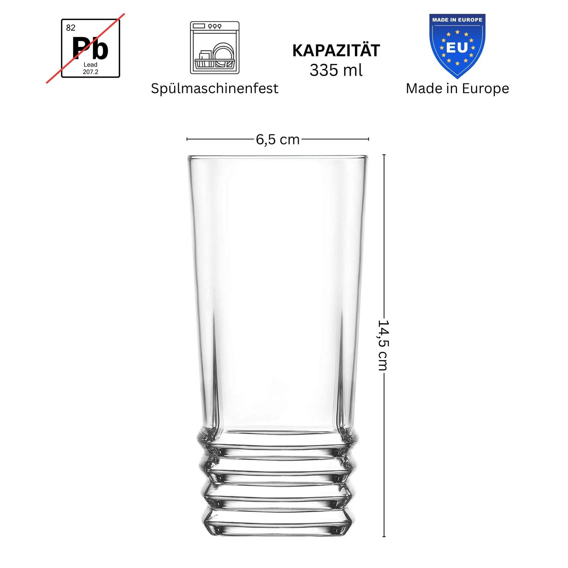 Diese Trinkgläser im 12er Set mit einem Fassungsvermögen von 315 und 335 ml eignen sich ideal für Wasser, Säfte, Cocktails, Matcha und Softdrinks. Das klare Glasdesign mit gerilltem Boden sorgt für einen modernen Look auf jedem Tisch. Die Gläser sind spülmaschinenfest, bleifrei und in Europa hergestellt.