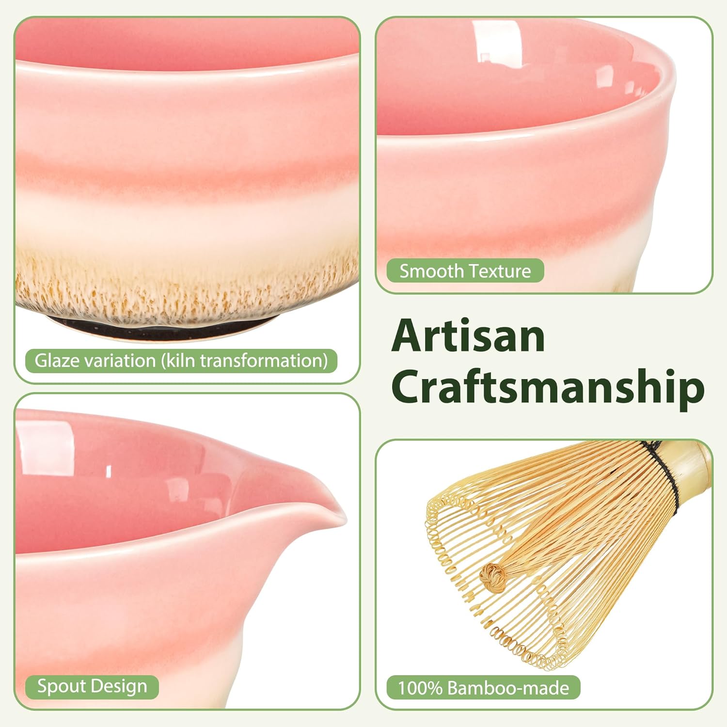 Japanisches Matcha-Set, 7-teilig – Handgefertigtes Keramikset für die traditionelle Teezeremonie, Pink
