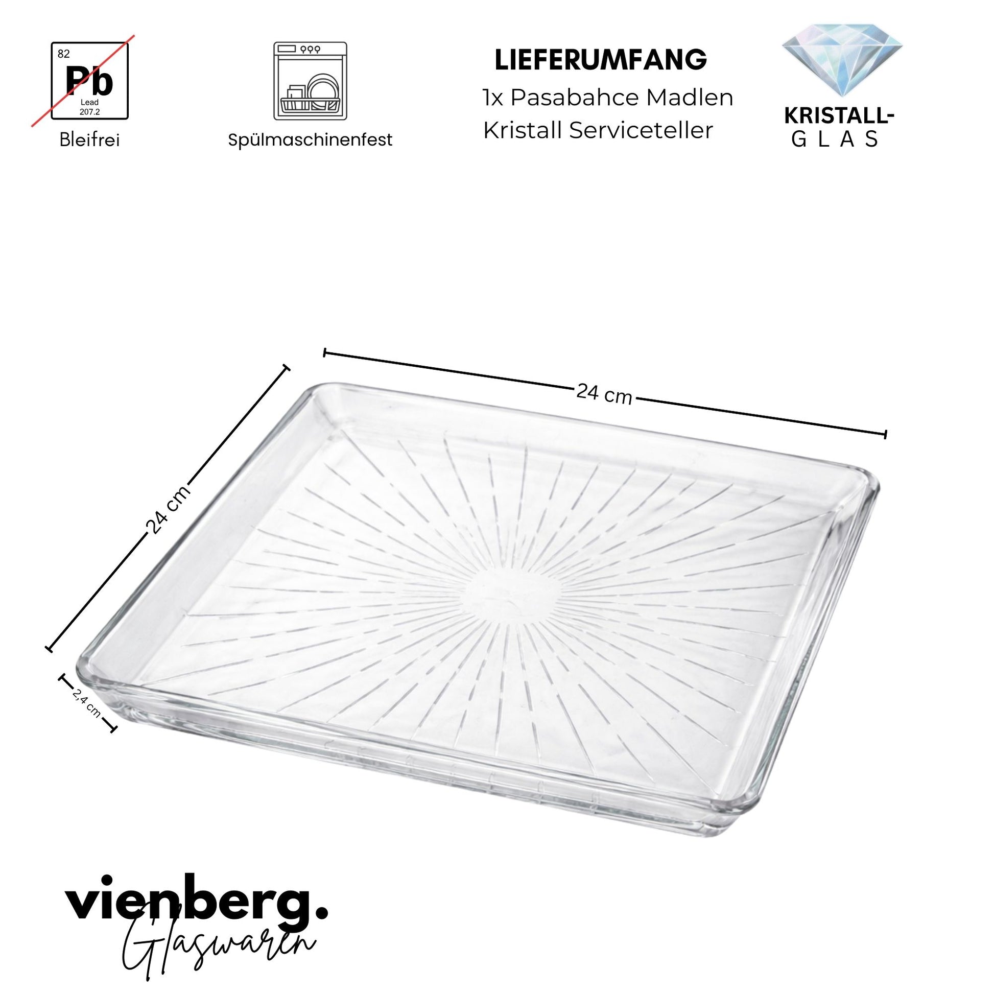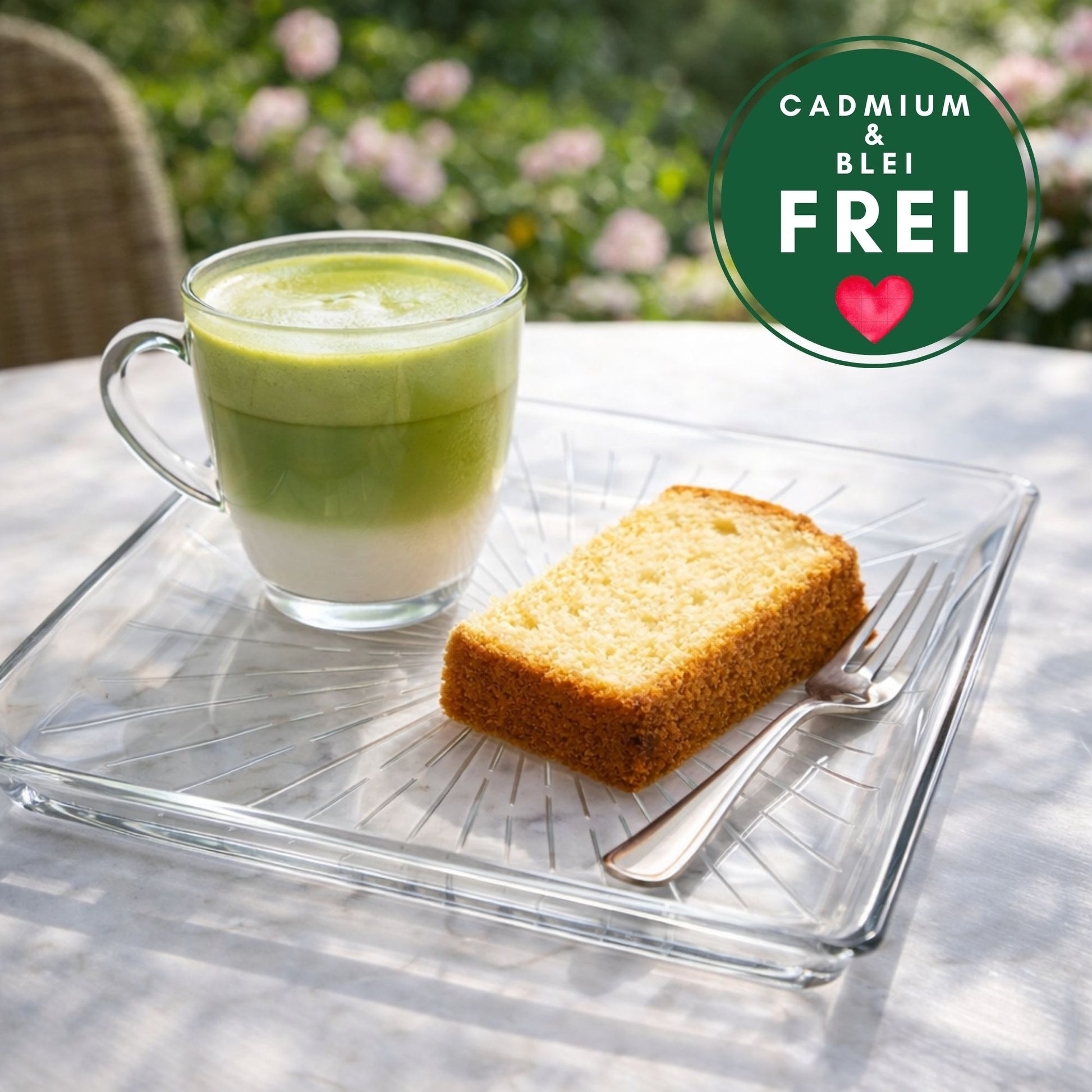 Madlen Glas Servierteller quadratisch 24x24cm aus Kristallglas – Glasteller für Kuchen, Dessert, matcha