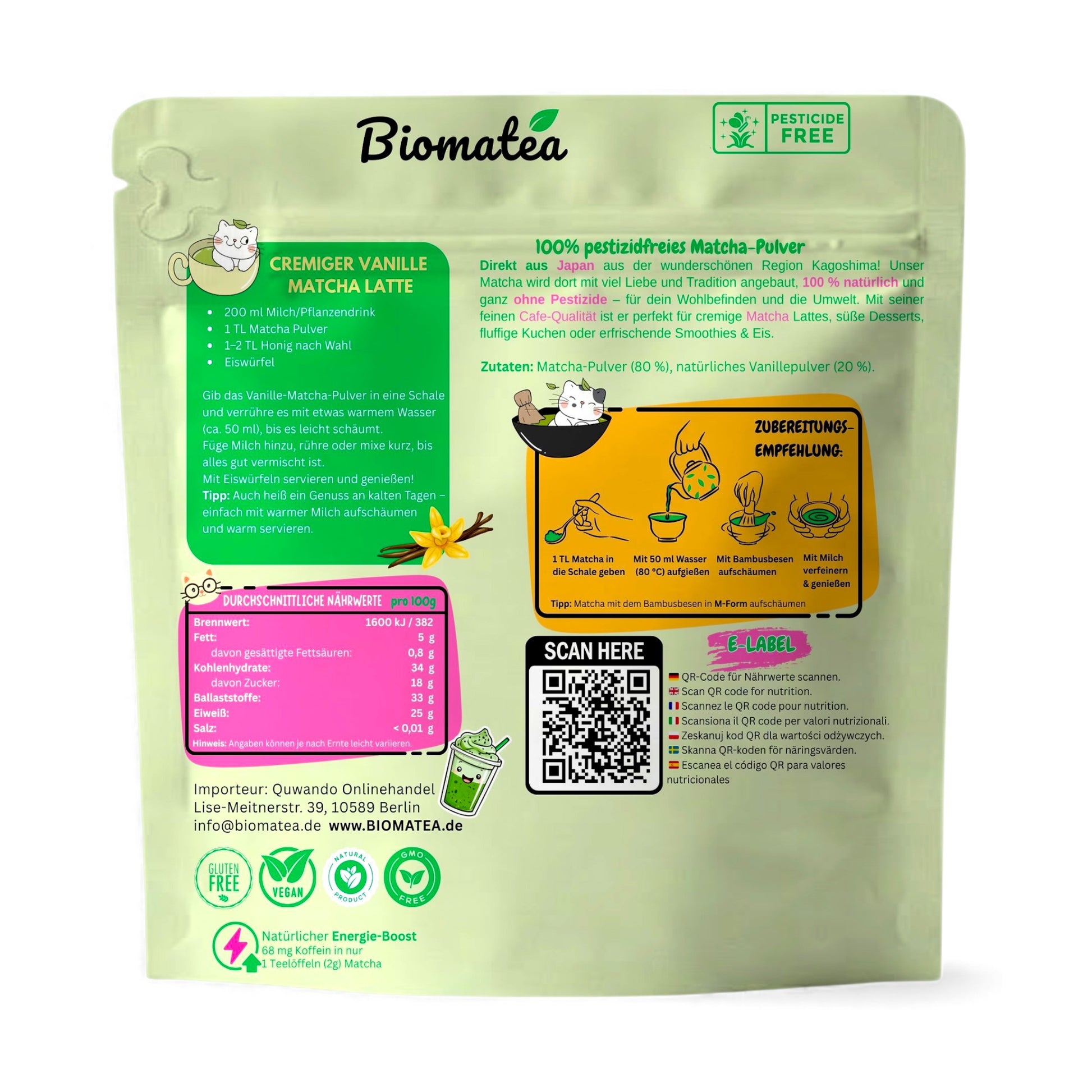 Japanischer Matcha aus Kagoshima mit natürlichem Vanillearoma und Vanillepulver