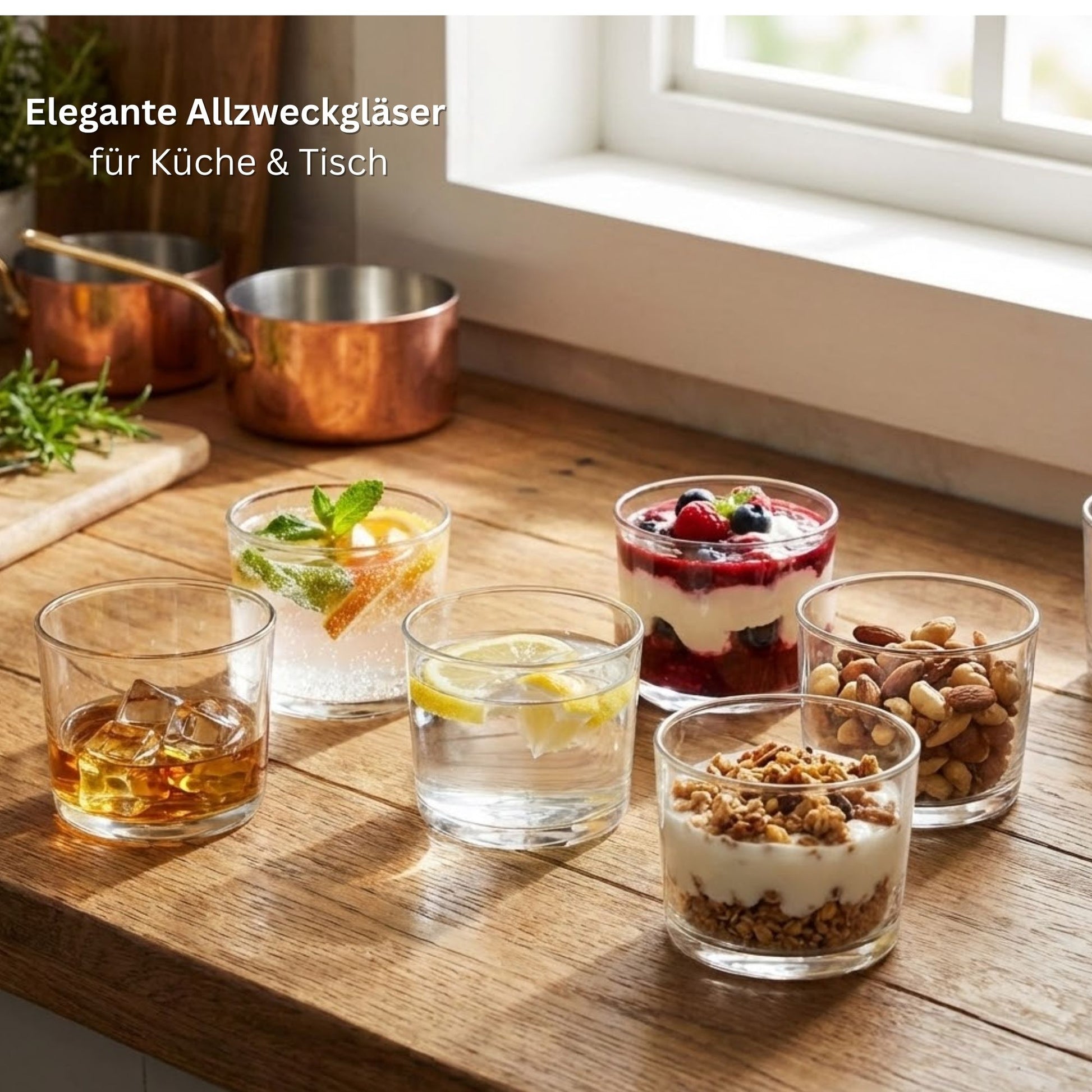 Bodega 240 ml Glas Set 6 Stück Vielseitige Trinkgläser & Dessertschalen, Glasschalen