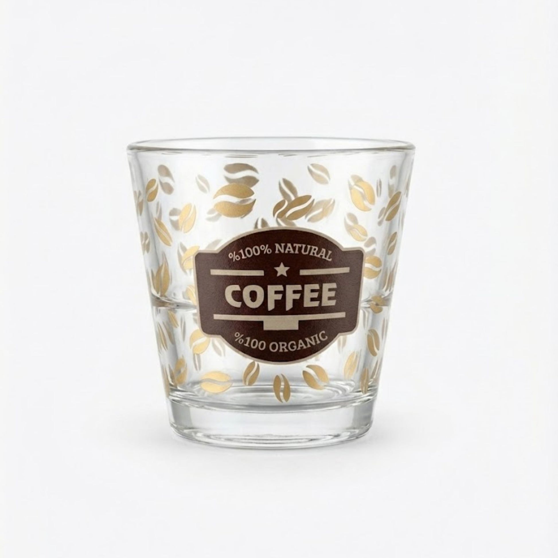 Dieses stilvolle 6er Set bietet hochwertige Gläser aus dickem und besonders langlebigem Glas. Dank modernem Digitaldruckdesign mit goldenen Kaffeebohnen sind sie ein echter Blickfang auf jedem Tisch.